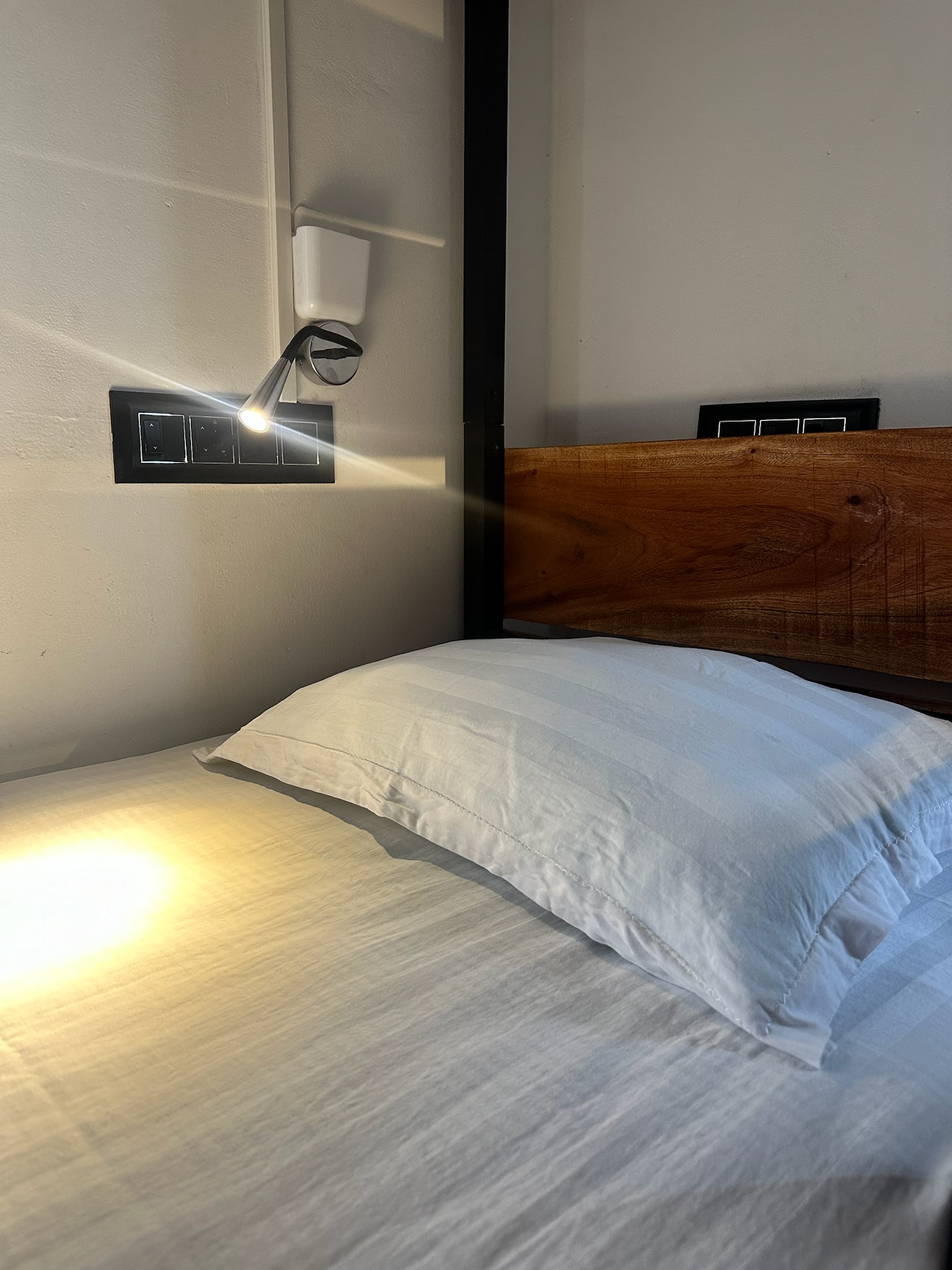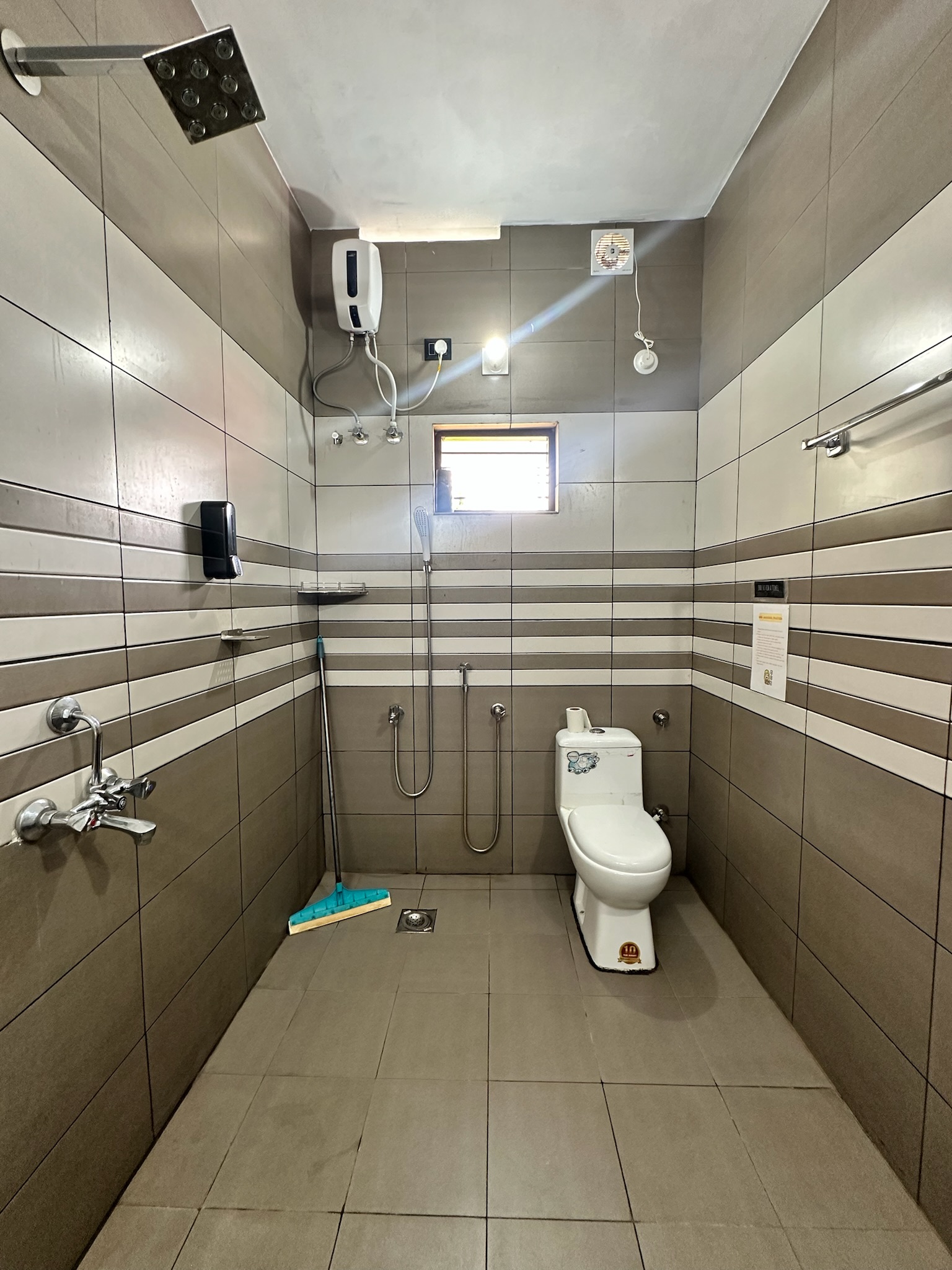 - The room has an attached washroom.